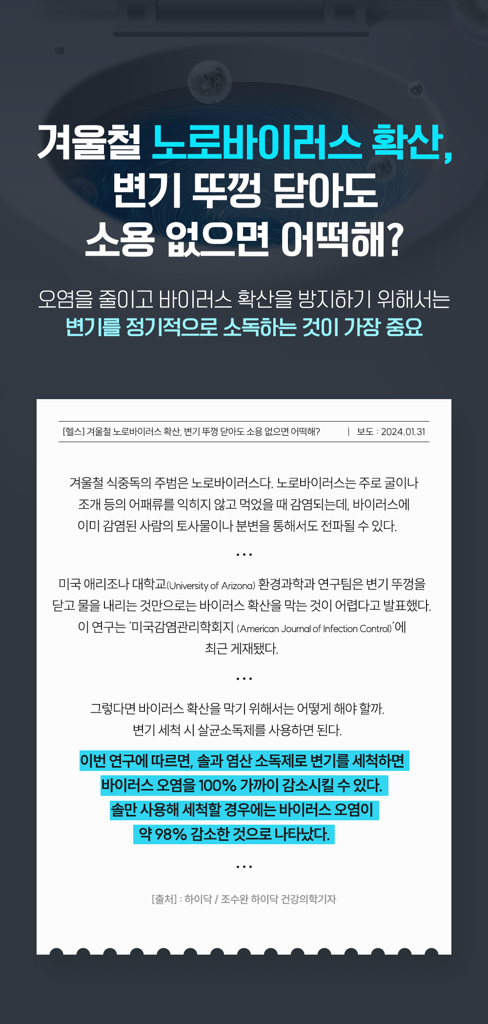 덥고 습해지면 변기 물 때, 냄새, 세균 때문에 고민이세요?