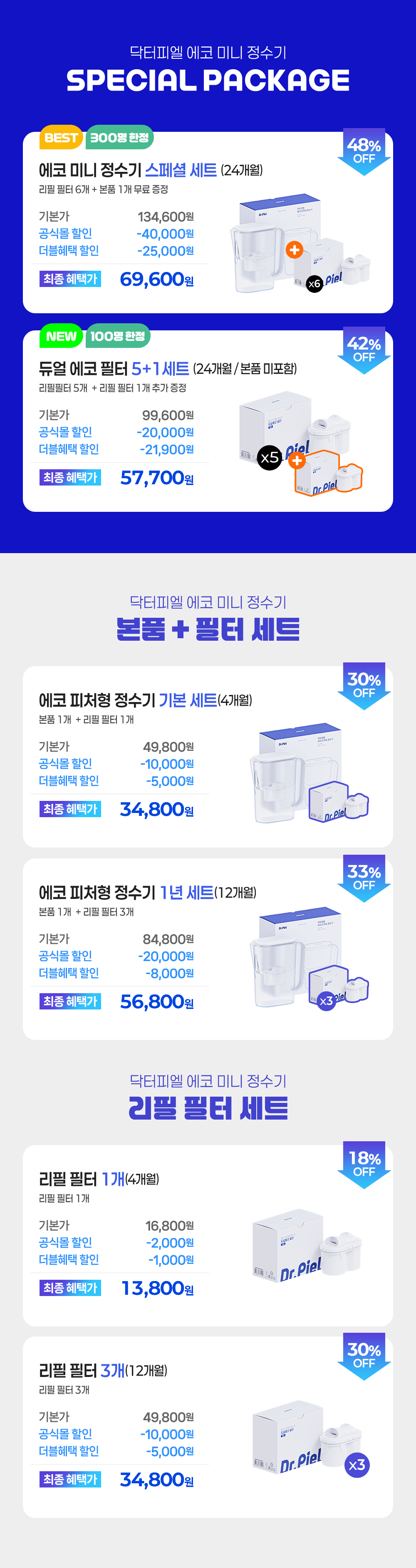 [닥터피엘 에코 피처형 정수기] 리필 필터 1개입 (필터 1개 / 4개월)SALE