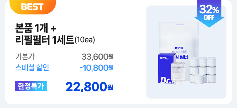 [누적 150만개 판매돌파] 닥터피엘 여행용 샤워필터 (미니멀사이즈 휴대용 샤워기 필터)SALEBESTMDHOT