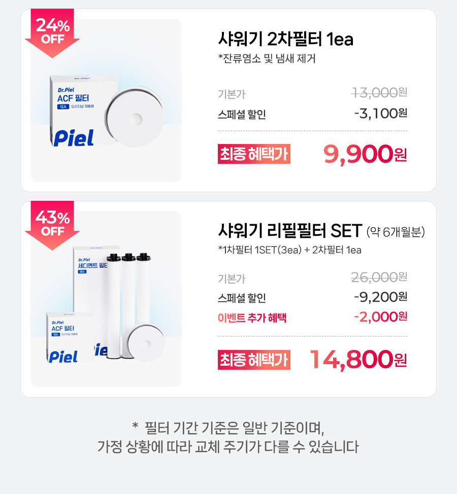닥터피엘 오리지널 / 와이드 샤워헤드 각 헤드 사이즈가 상이하기에 2차필터 구매 시 구매하신 닥터피엘 샤워기의 헤드를 꼭 확인해주세요!